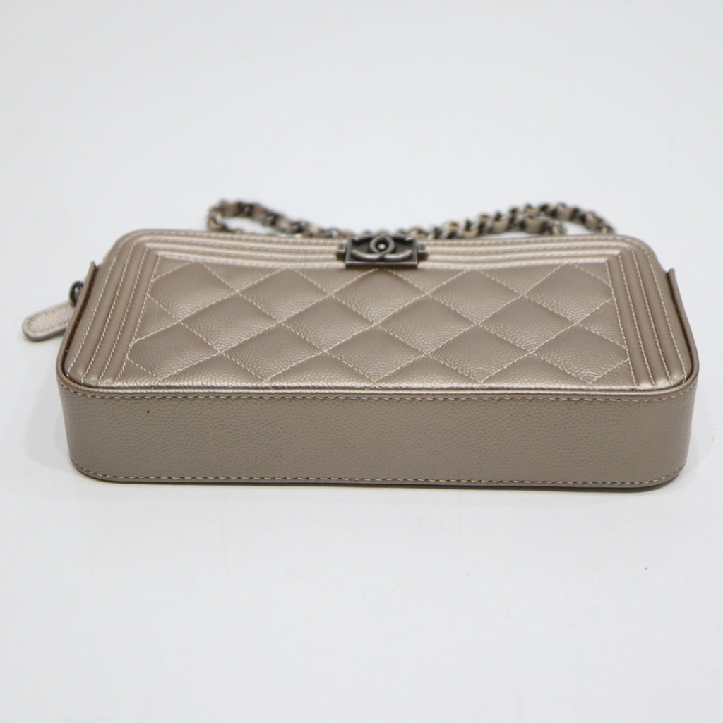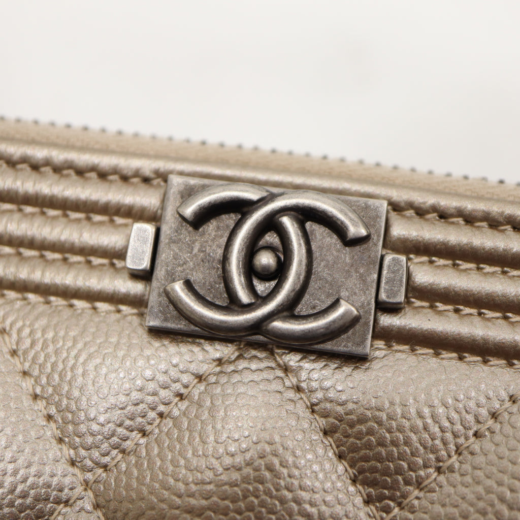 未使用 CHANEL シャネル ボーイシャネル チェーンウォレット ショルダーバッグ キャビアスキン 24番台 ゴールドカラー系 H9538