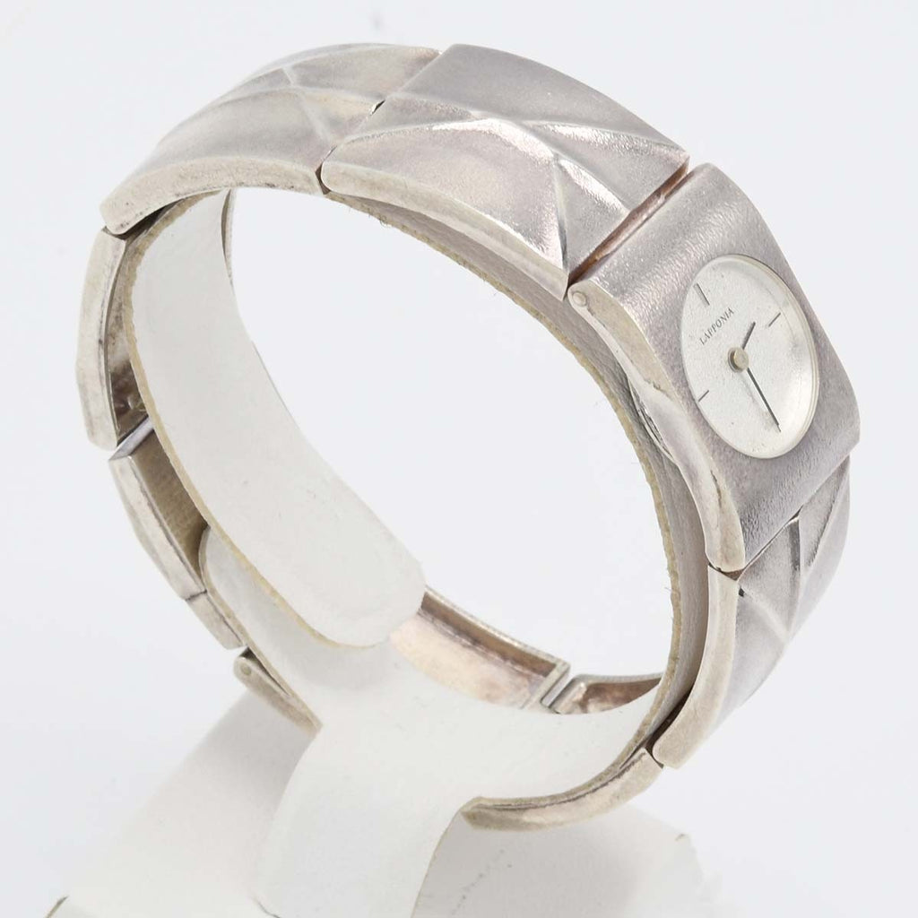 商品説明:ラポーニア クォーツ腕時計です。Bランク:シルバー特有のくすみや小傷が見受けられますが、まだまだお使い頂ける商品です。シルバーの風合いを損なわないように現状でのお渡しとなります。 現在稼働しています。2025年9月電池交換済みです。修理やメンテナンスが必要になった場合は落札者様負担となりますのでご了承いただける方のみご入札をお願い致します。