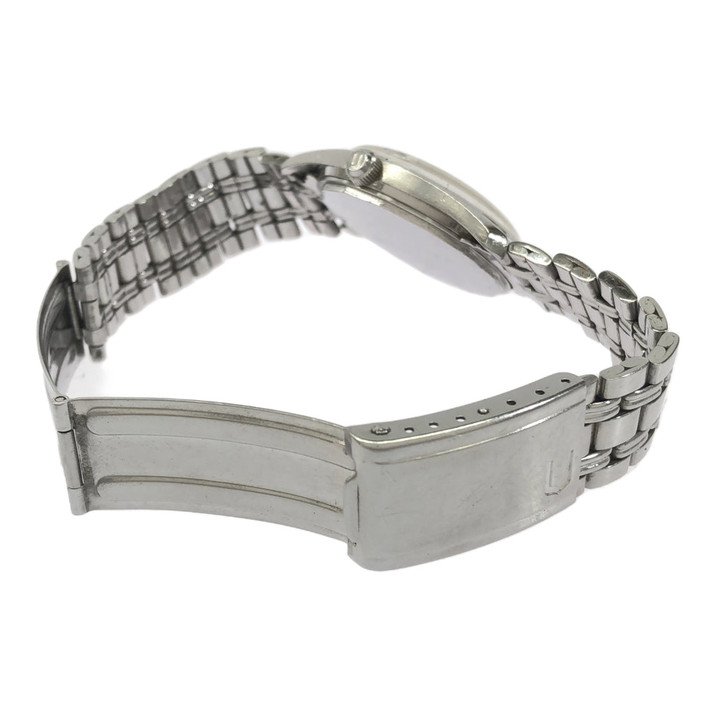 ユニバーサルジュネーブの自動巻き腕時計です。Bランク:使用に伴い風防やケース、裏蓋やベルトに小傷が見受けられます。現在稼働しています。タイムグラファー平置きで日差7秒程となっておりますが、姿勢差などによりますので参考程度にお考え下さい。修理やメンテナンスが必要になった場合は落札者様負担となりますのでご了承いただける方のみご入札をお願い致します。