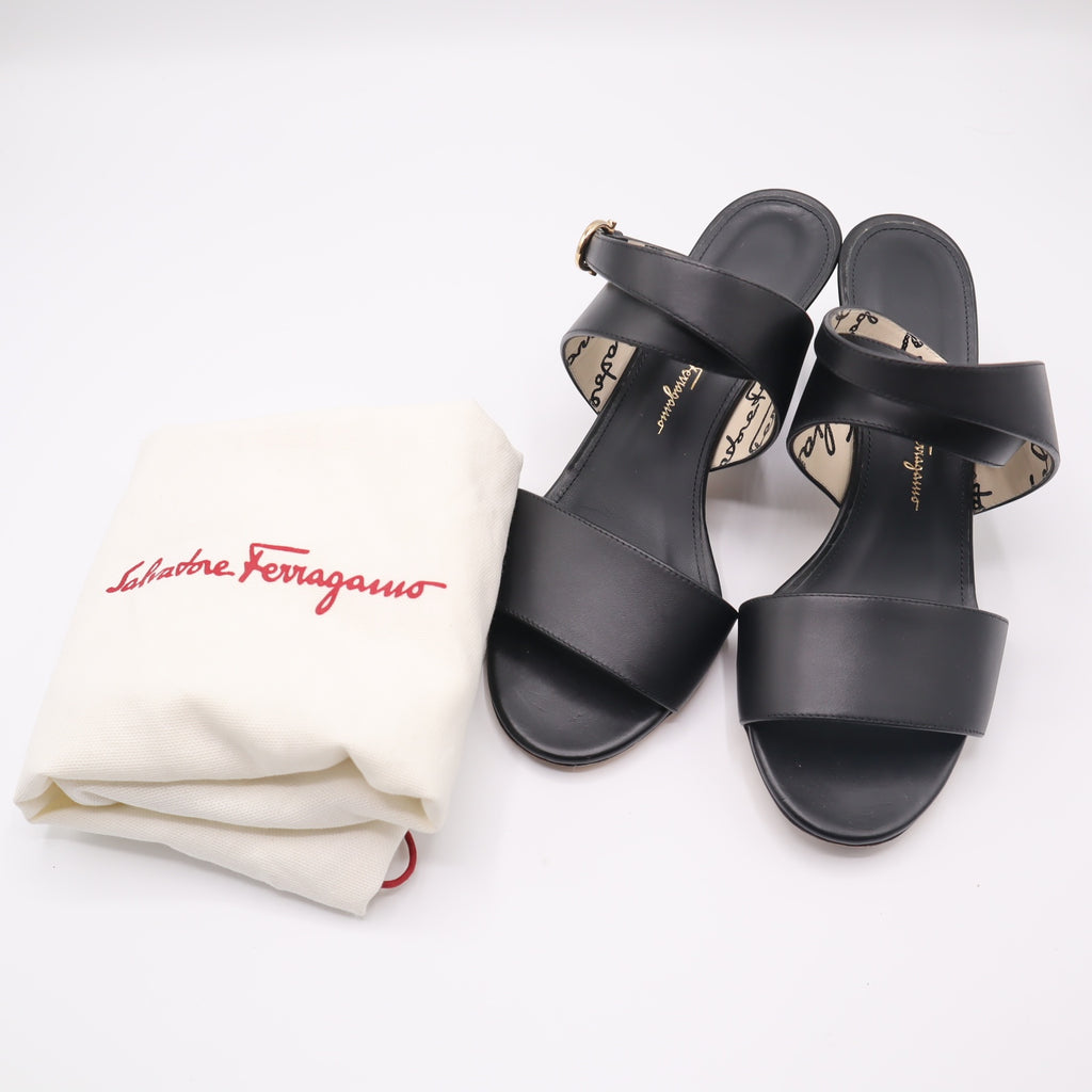 Salvatore Ferragamo フェラガモ サンダル 6 1/2 23.5cm ブラック 靴 21k352-2