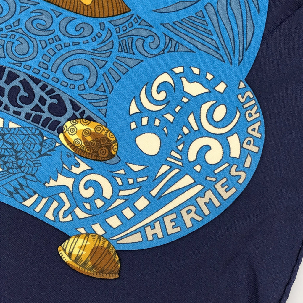 HERMES エルメス スカーフ カレ90 L'ATLANTIDE アトランティス大陸 シルク100% ブルー系 服飾小物 ok1140