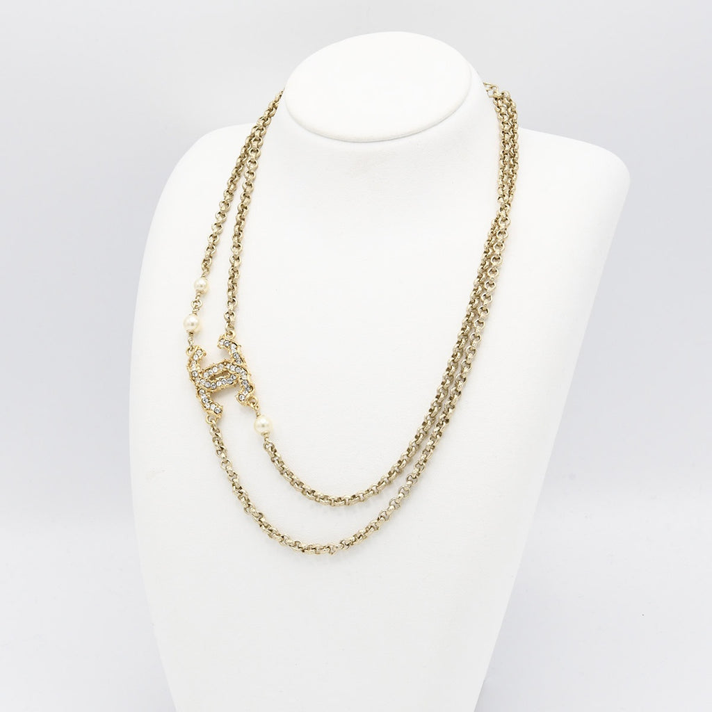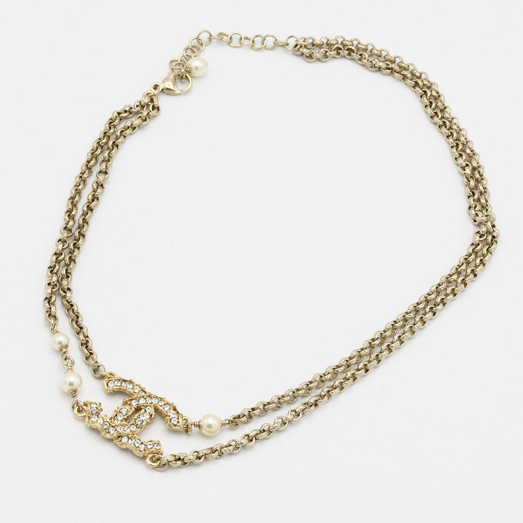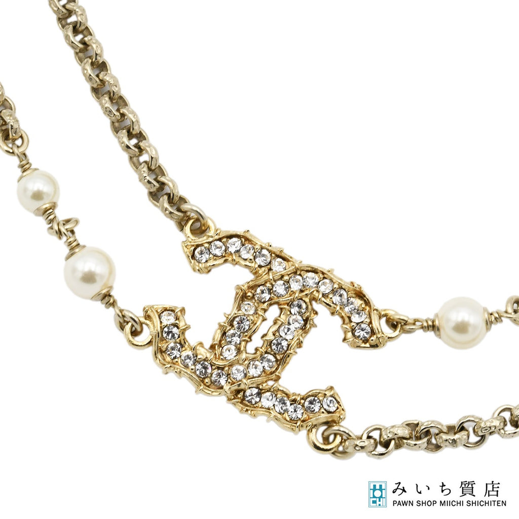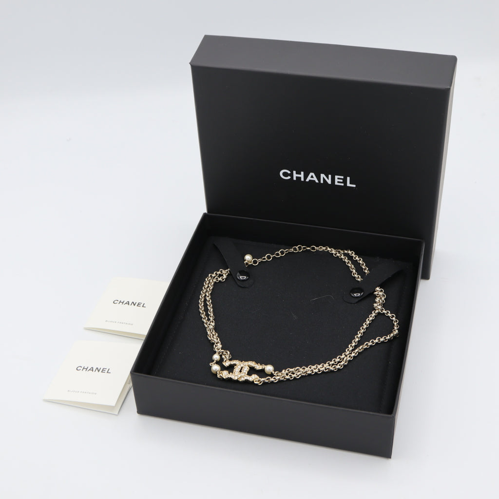 CHANEL シャネル 二連ネックレス C20 ココマーク フェイクパール ラインストーン レディース アクセサリー 箱有 H16376
