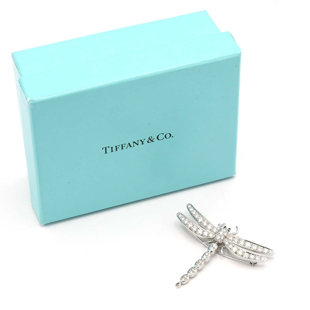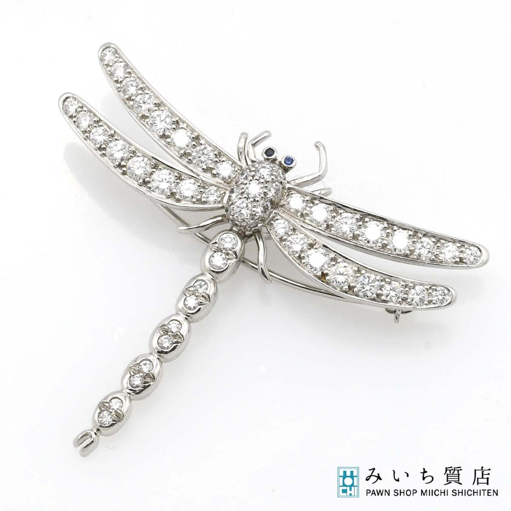 仕上済 TIFFANY&Co. ティファニー ブローチ ドラゴンフライ エンチャント ラージ Pt950 11.6g ダイヤモンド サファイア 箱 M4197