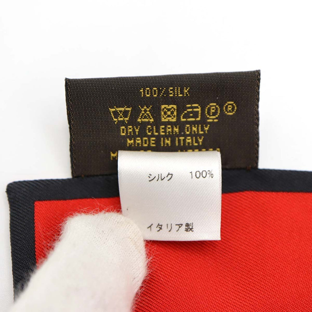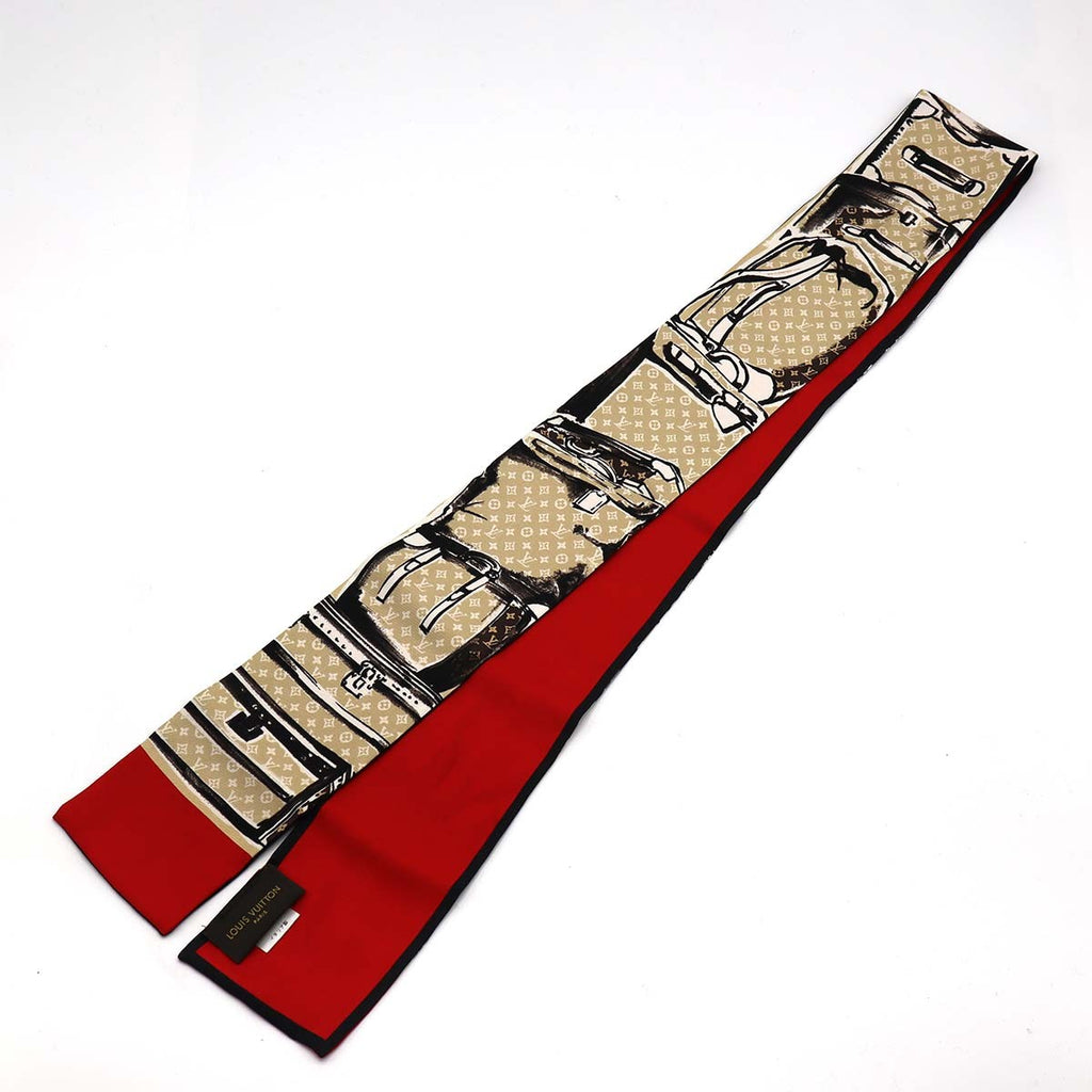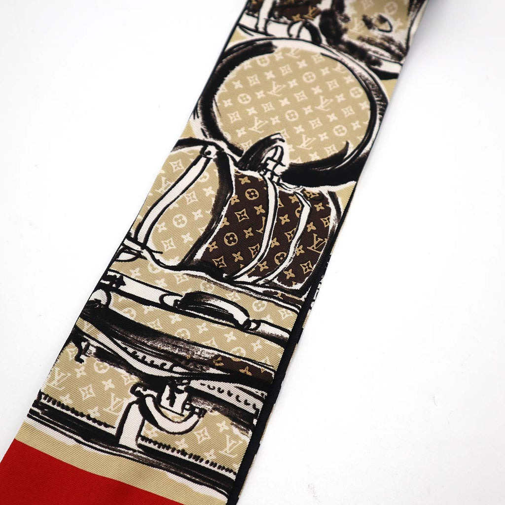 LOUIS VUITTON ルイヴィトン バンドー トランク ナロー M73964 シルク100% スカーフ ベージュ/レッド モノグラム 箱あり 25k803-4