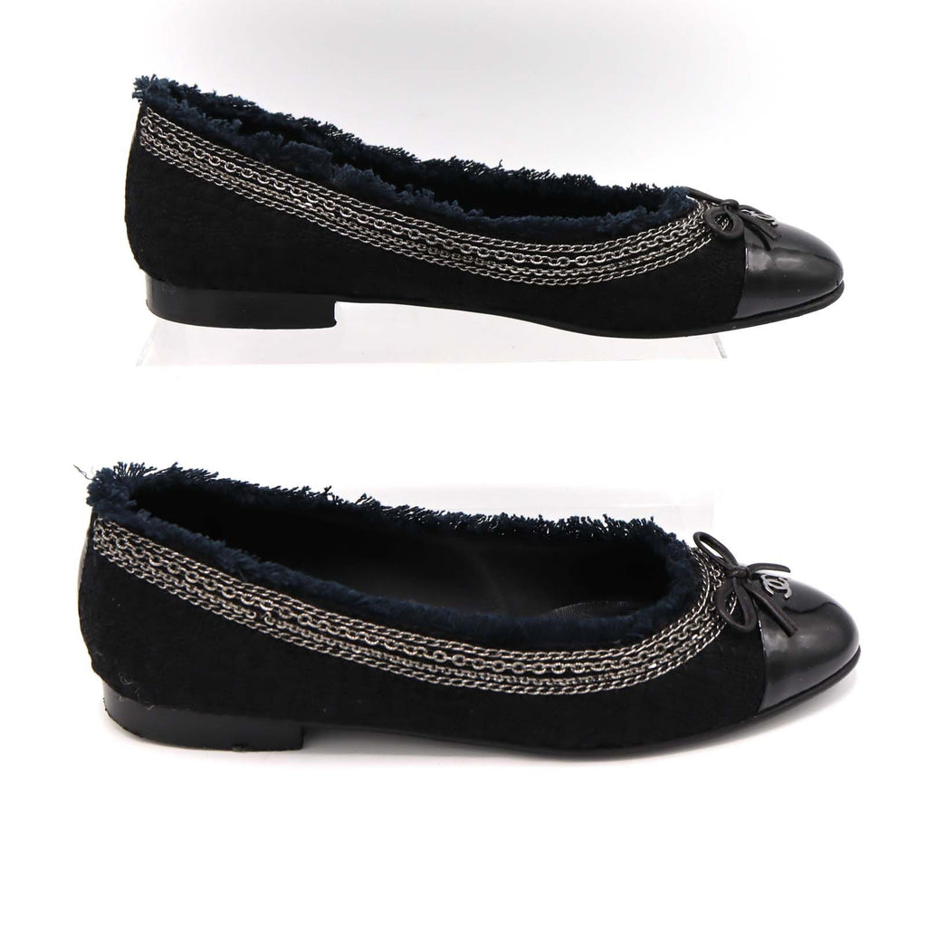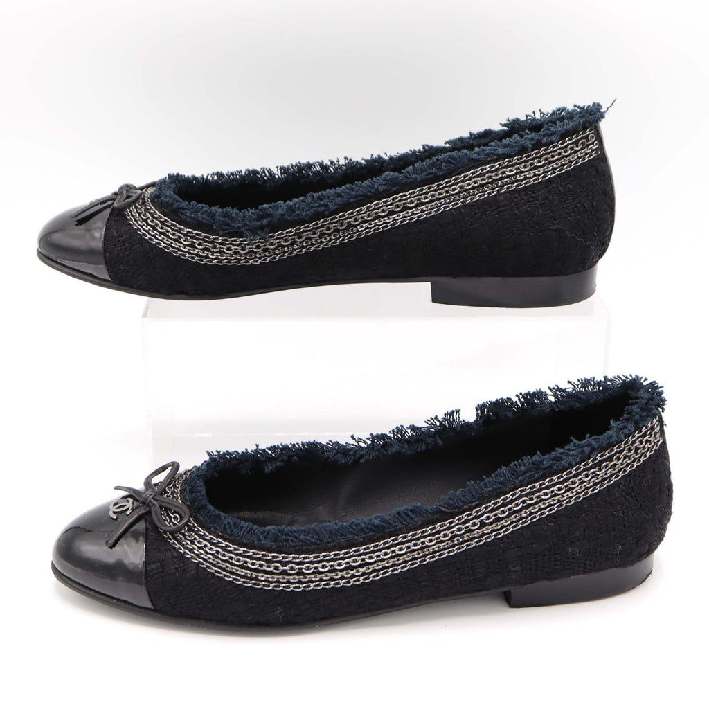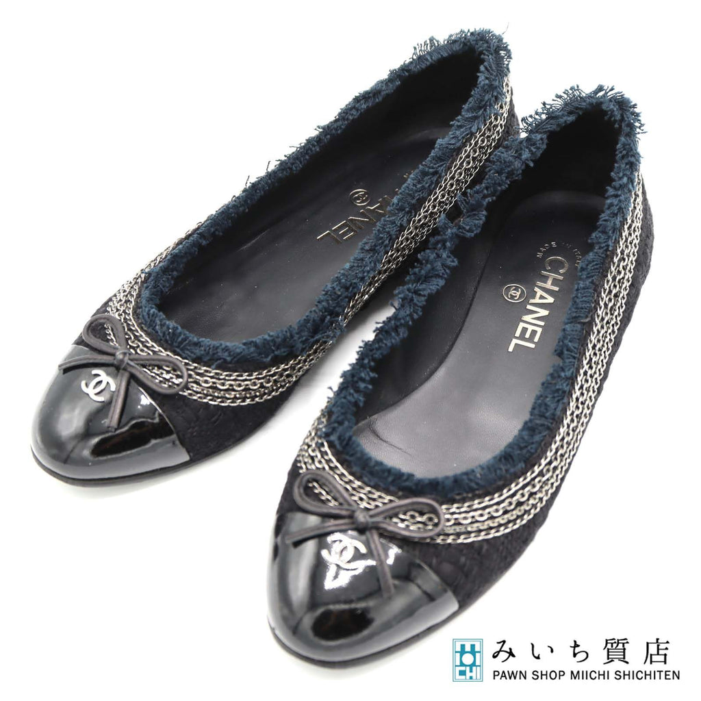 CHANEL シャネル ローヒール パンプス G26773 38C 25cm ツイード チェーンデザイン 靴 H21002