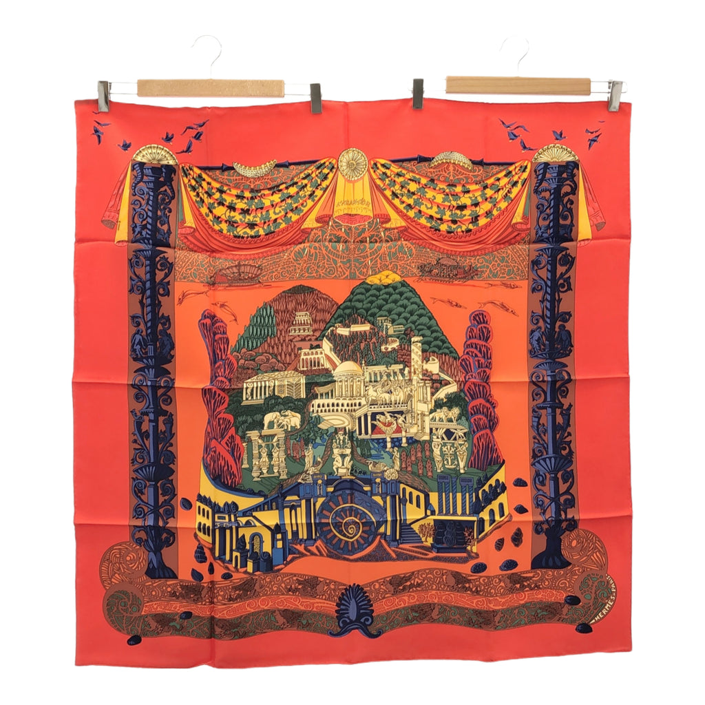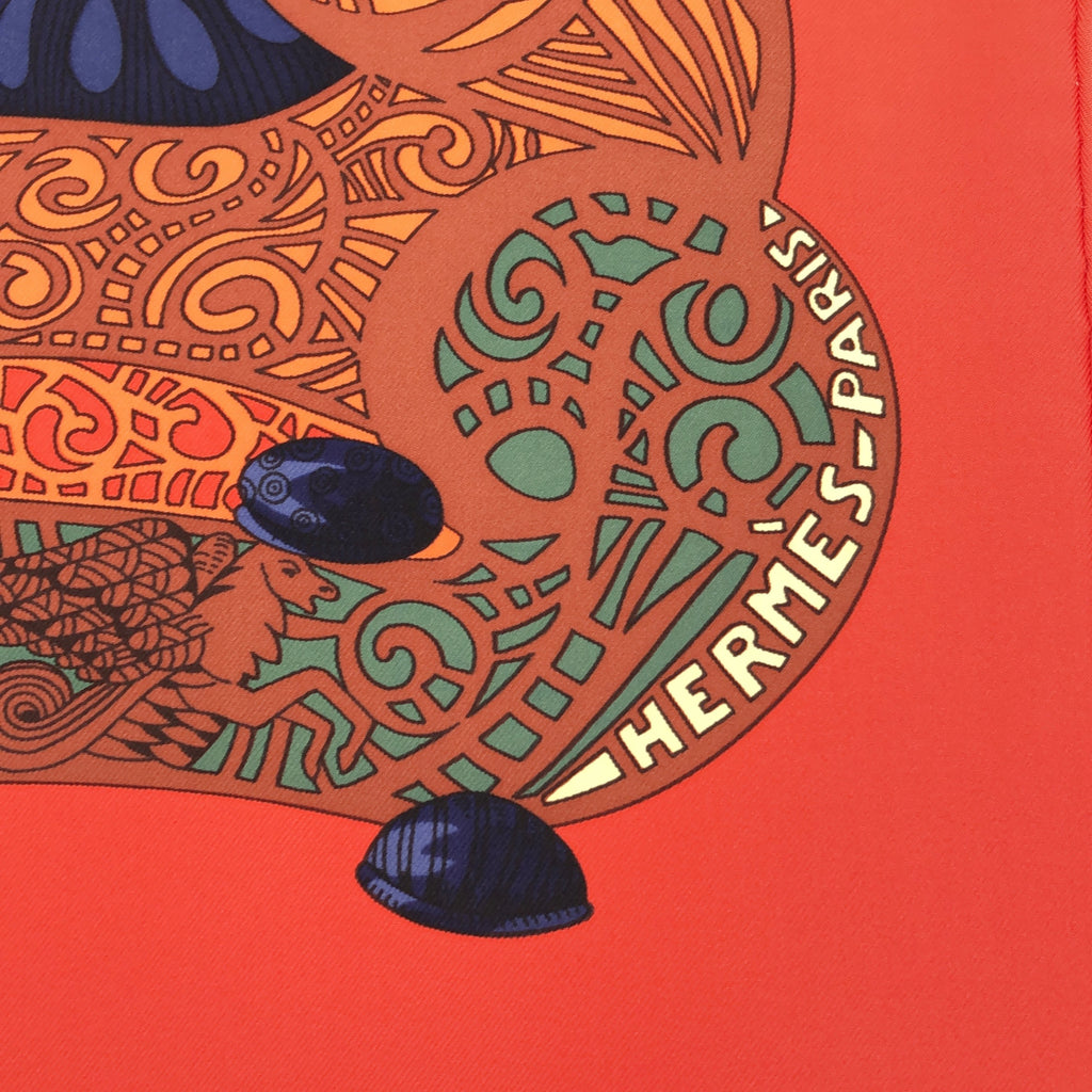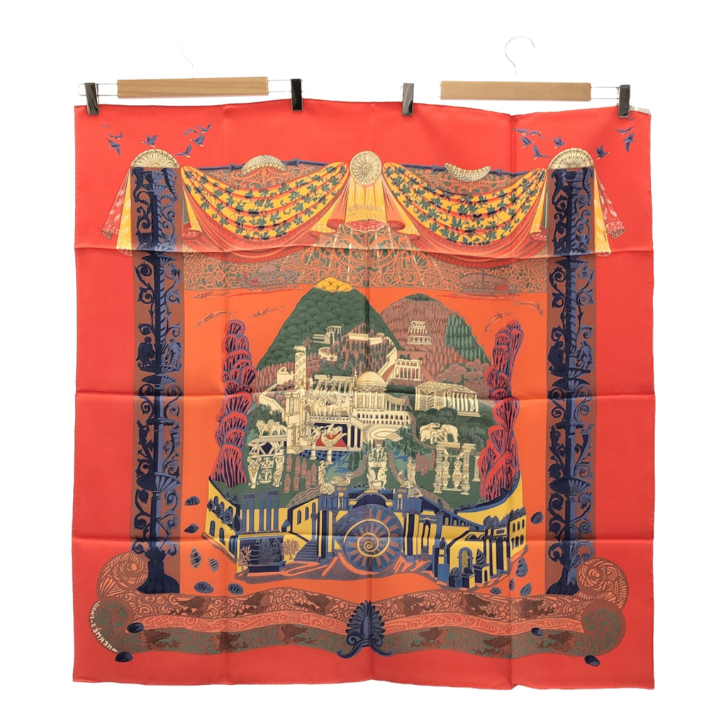 HERMES エルメス スカーフ カレ90 L'ATLANTIDE アトランティス大陸 赤系 シルク100% オレンジ系 服飾小物 H20492