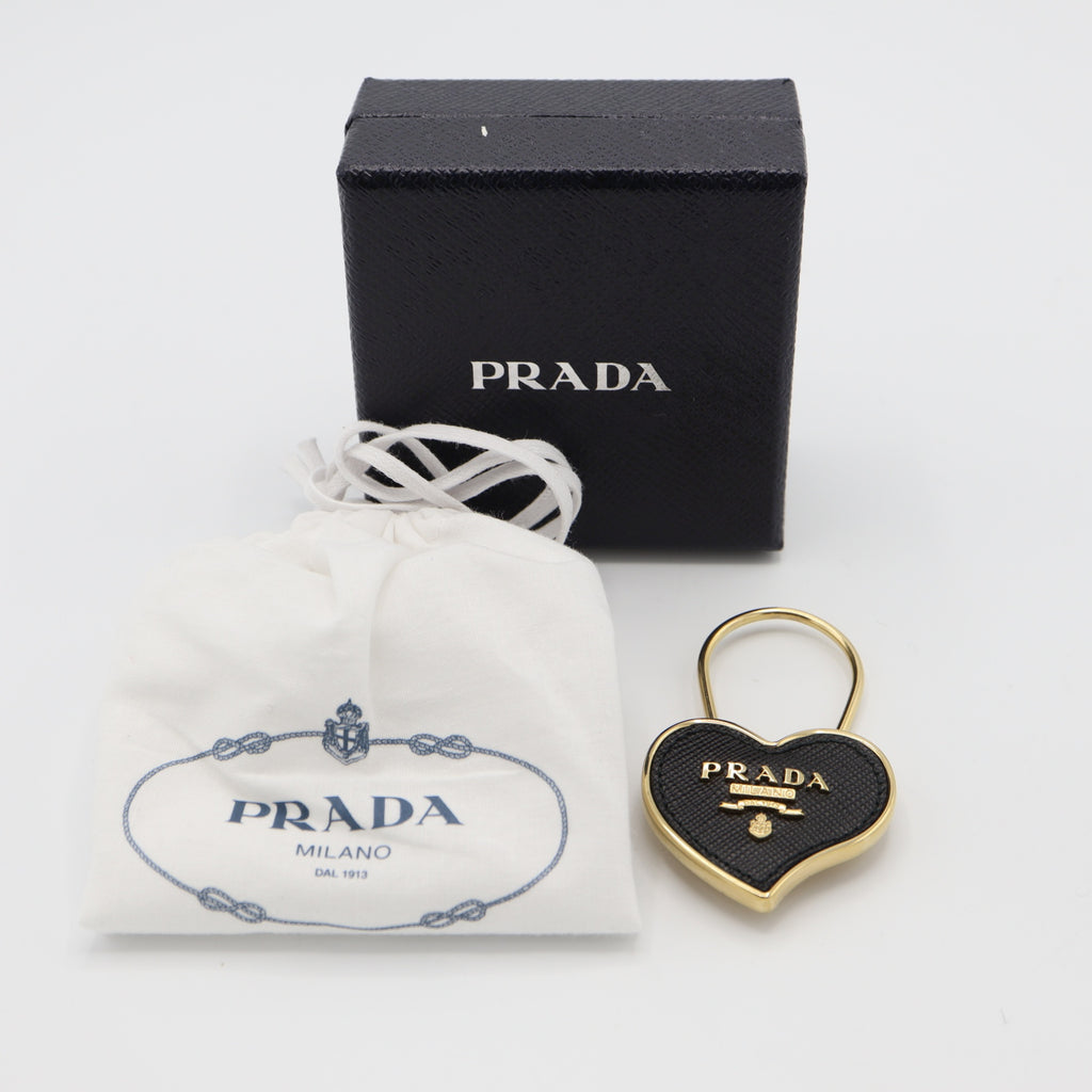 PRADA プラダ サフィアーノ ハート キーホルダー ブラック アクセサリー 箱有 H9689