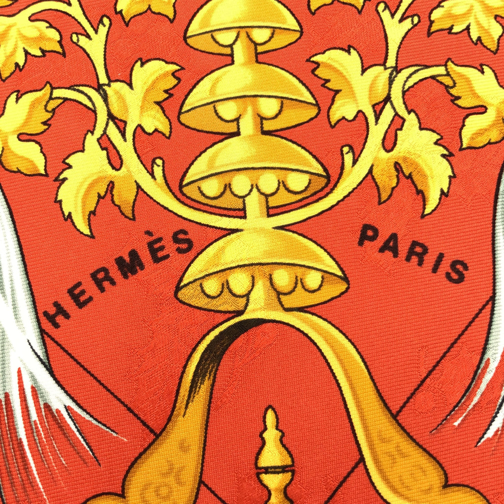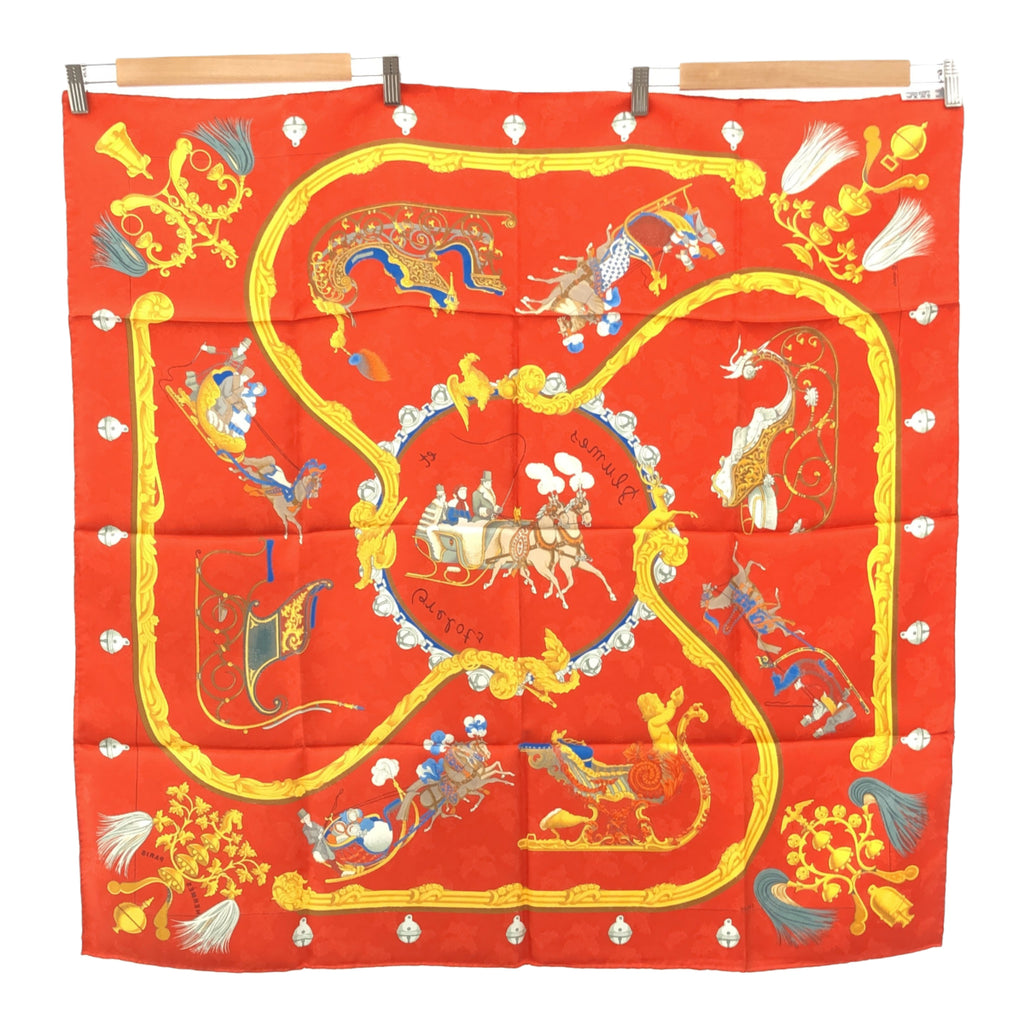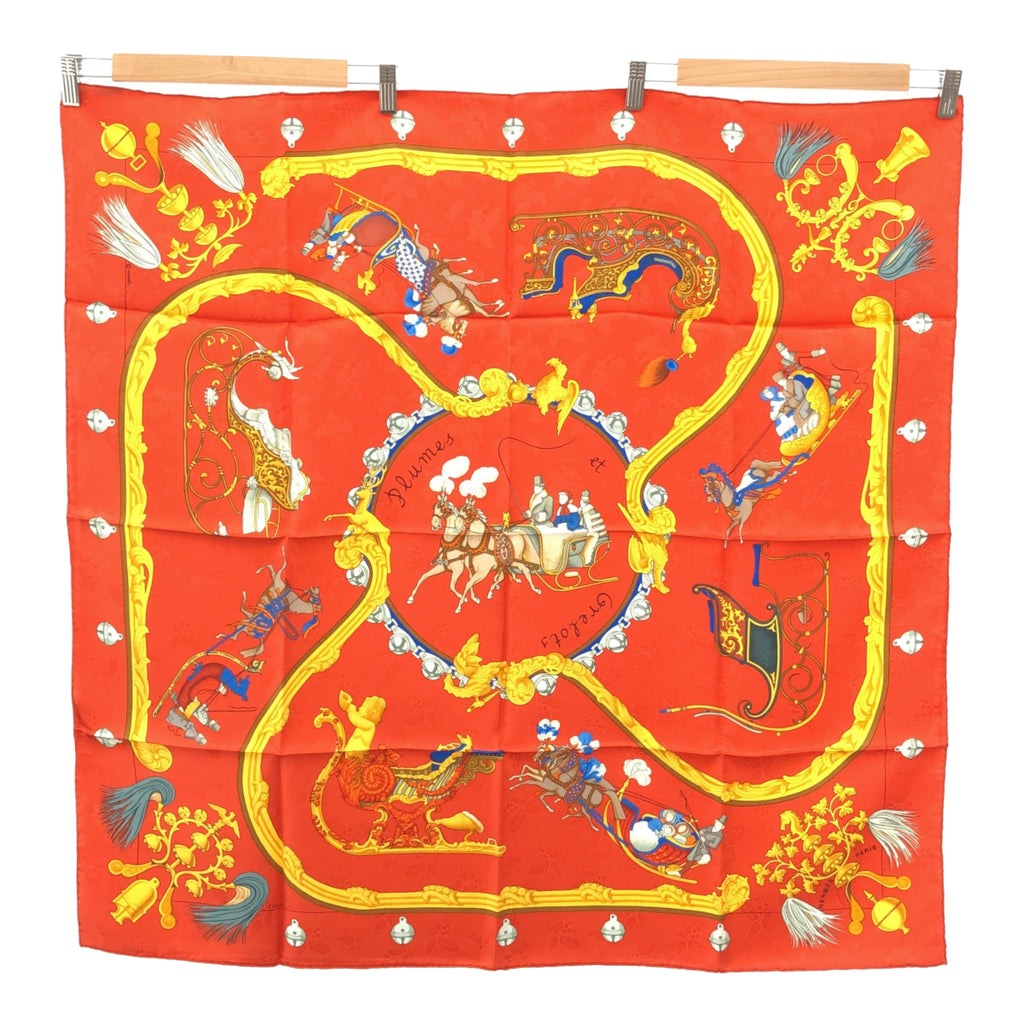 HERMES エルメス カレ90 Plumes et Grelots 羽飾りと鈴 スカーフ シルク100 オレンジ系 M4409