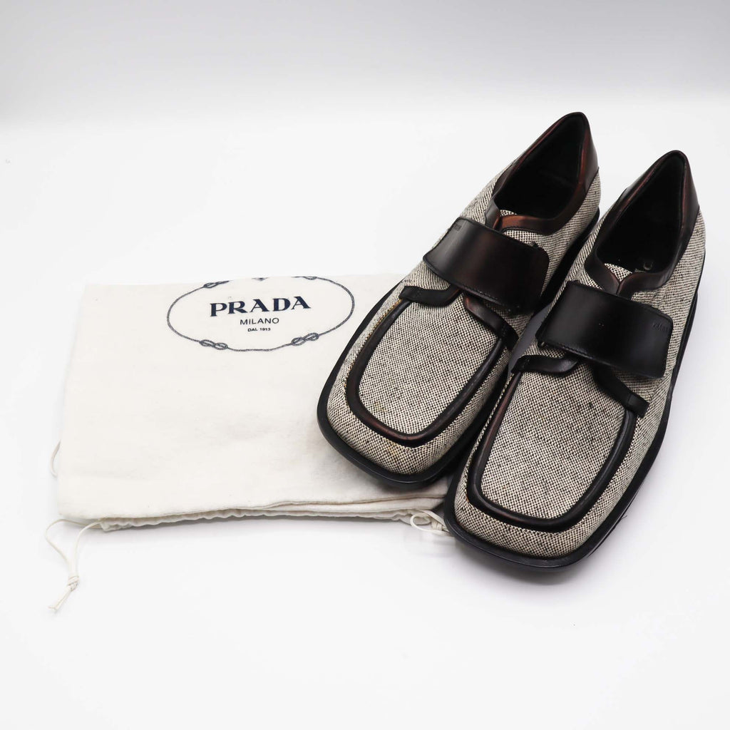 商品説明:プラダのスクエアトゥーシューズです。Bランク:使用に伴い小傷や擦れ、シミが見受けられますが、まだまだお使い頂ける商品です。※サイズ記載がないため、実寸にてご確認ください。
