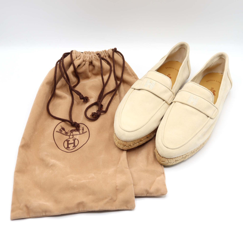 HERMES エルメス パンプス 38 スウェード ホワイト系 レディース 靴 H20374