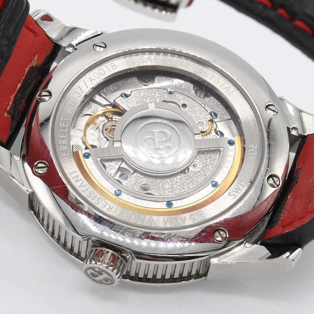 商品説明:ペルレのA1037/A0018自動巻き腕時計です。Bランク:使用に伴いケースや裏蓋に小傷、ベルトの劣化が見受けられますが、まだまだお使い頂ける商品です。現在稼働しています。タイムグラファー平置きで日差-7秒程となっておりますが、姿勢差などによりますので参考程度にお考え下さい。修理やメンテナンスが必要になった場合は落札者様負担となりますのでご了承いただける方のみご入札をお願い致します。
