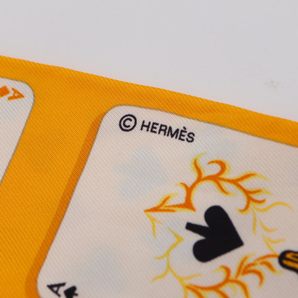 HERMES エルメス ツイリー Jeu De Cartes ジュード カルツ トランプ柄 シルク100 イエロー k745