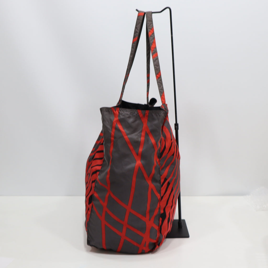 PRADA プラダ トートバッグ ナイロン 総柄 三角ロゴ レッド グレー 鞄 H18173