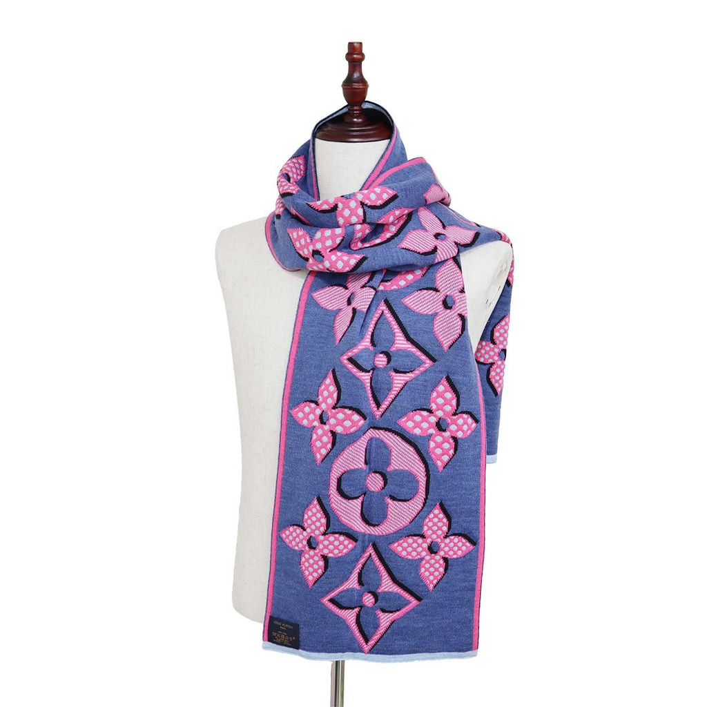 LOUIS VUITTON ルイヴィトン LV マフラー M73895 エシャルプ・ジャイアントポップ ウール100% リバーシブル 箱有 M4393