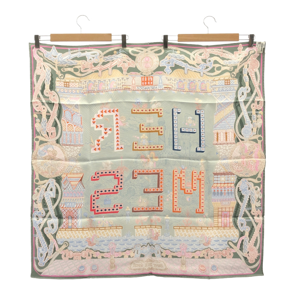未使用 HERMES エルメス カレ90 Super Silk Quest スーパーシルククエスト シルク100% グリーン系 服飾小物 H19940