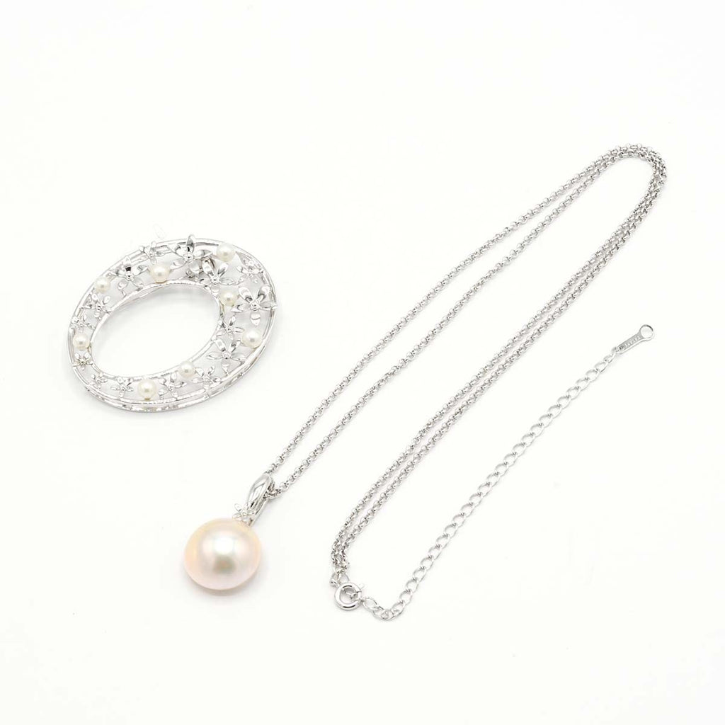 サイズ:チェーンの長さ:約64.5cm トップ:縦約5cm×横約4cm パール (トップ):約16.35mm (ブローチ):約3.4~4.45mm 総重量:約17.9g