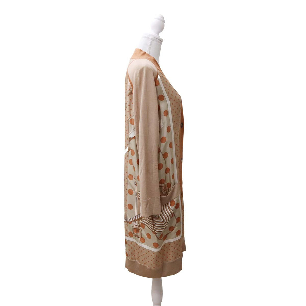 HERMES エルメス ツイルレーヌ ロングカーディガン Clic Clac a Pois クリッククラック ワンピース シルク 服 サイズ36 オレンジ系 H23220