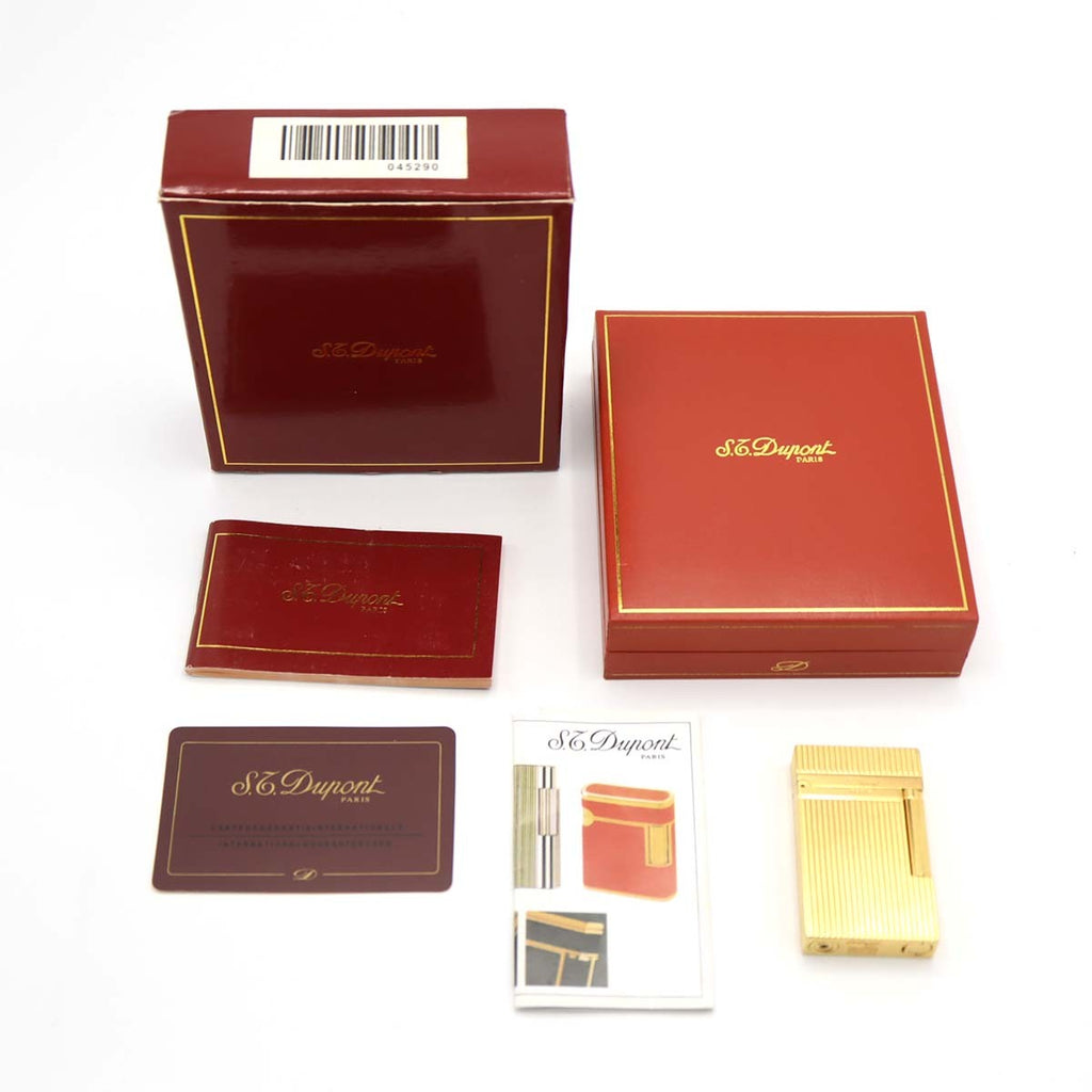 S.T.Dupont デュポン LINE2 ライン2 ヘアライン ガスライター ゴールドカラー 喫煙具 着火未確認 箱有 eco1729