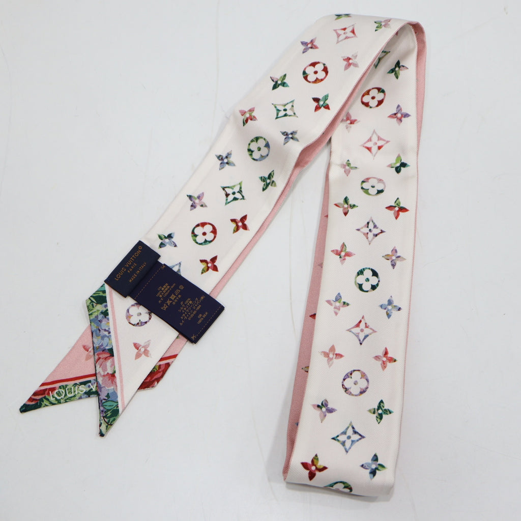 LOUIS VUITTON ルイヴィトン LV バンドーBB M77904 フラワーモノグラム柄 シルク100 ピンク×ホワイト 箱有 M4156