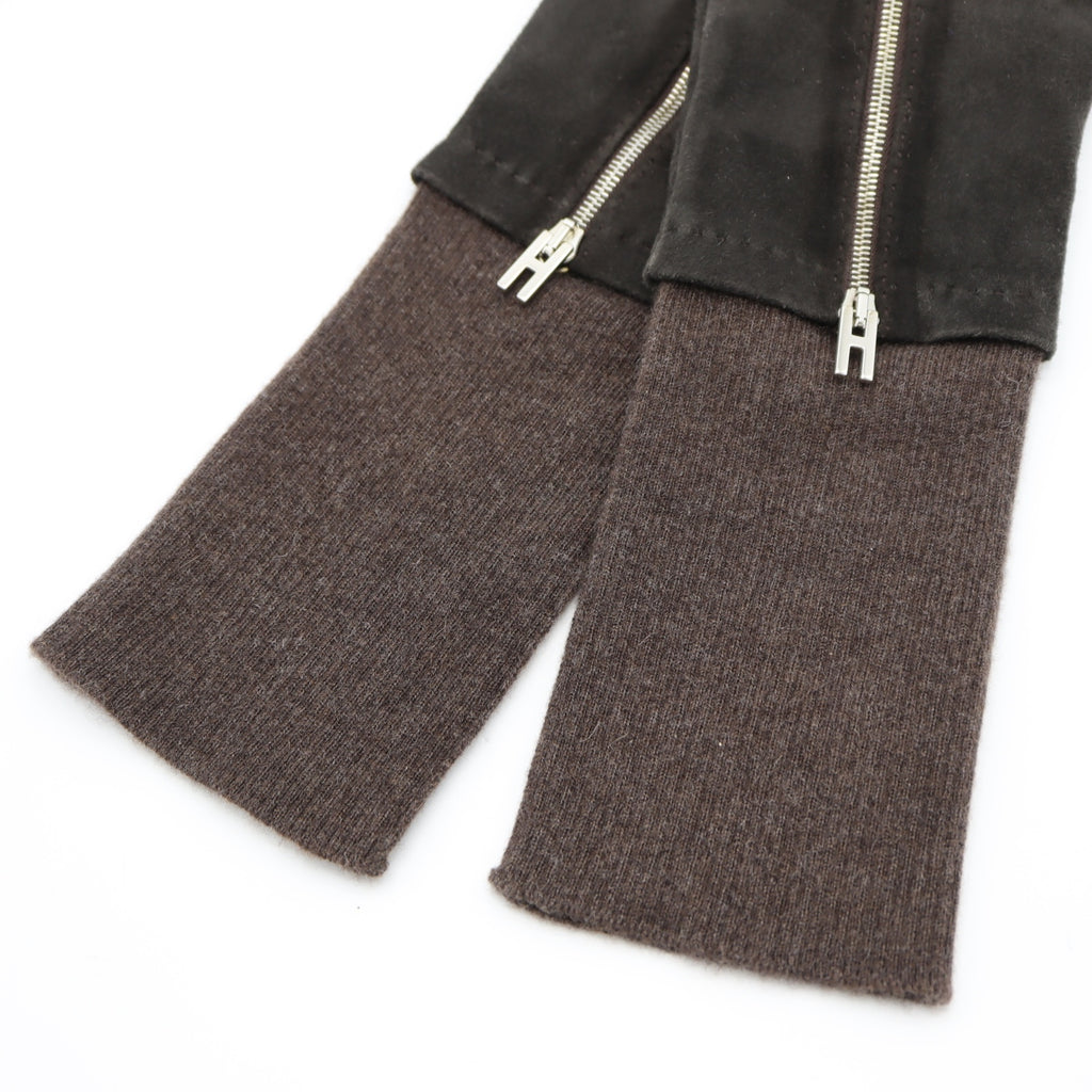 HERMES エルメス 手袋 グローブ スエード Hチャック 7 1/2 カシミヤ100 ブラウン 服飾小物 M4158