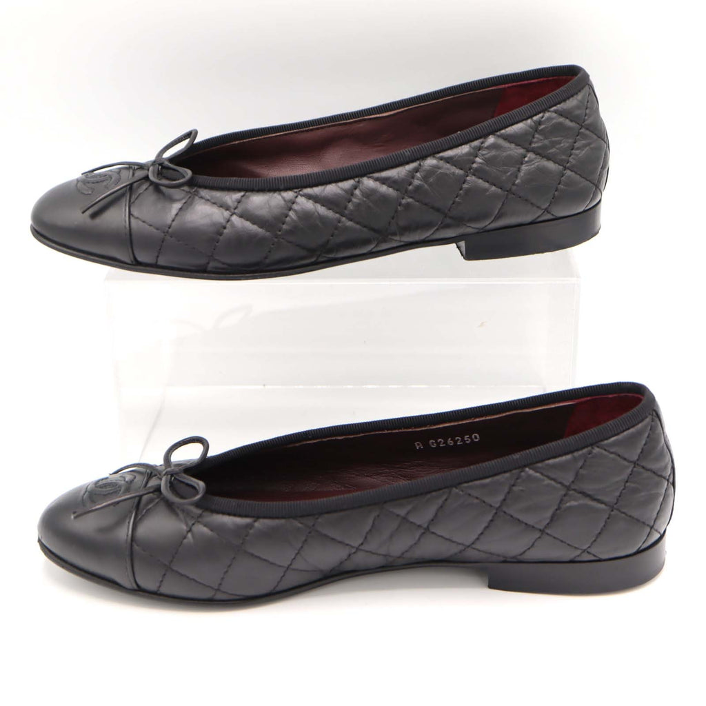 CHANEL シャネル フラットシューズ G26250 38C 25cm マトラッセ パンプス ブラック 靴 H21001