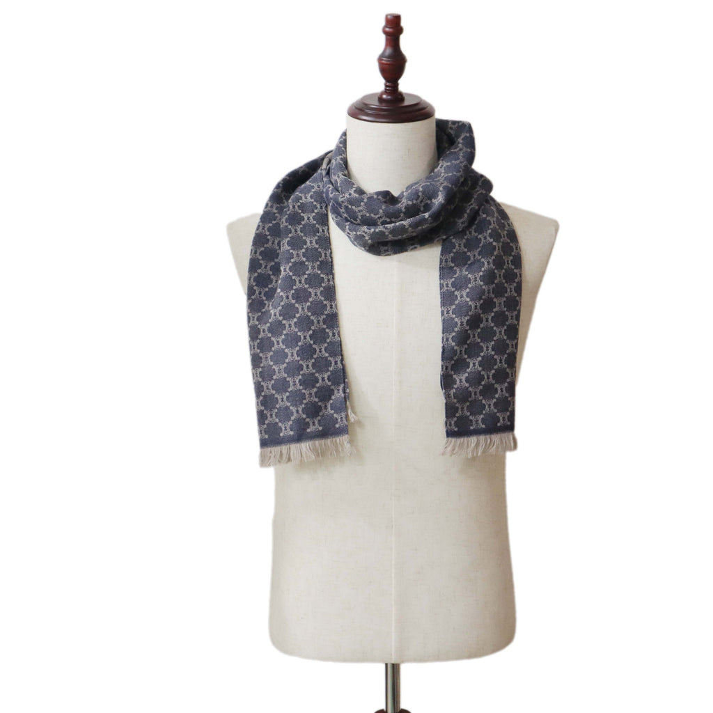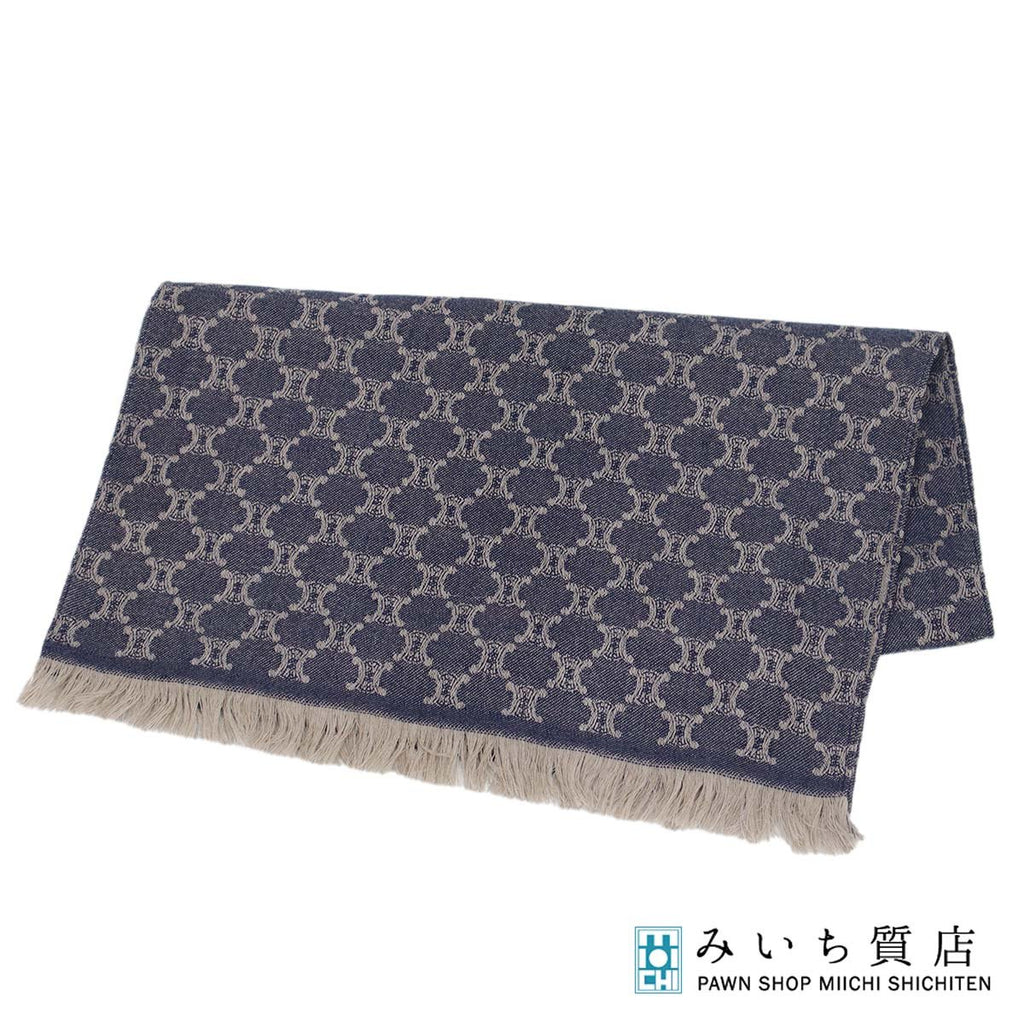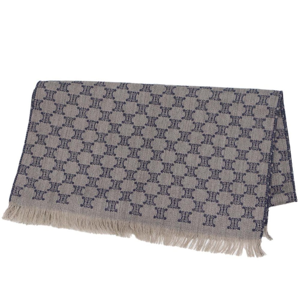 CELINE セリーヌ マフラー ストール トリオンフ柄 シグニチャー フリースウール56% ウール44% ネイビー 服飾小物 H1318