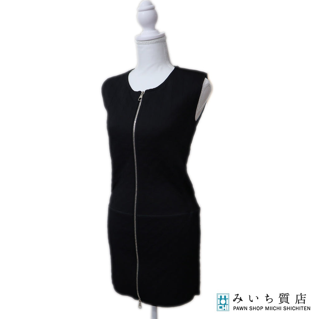 LOUIS VUITTON ルイヴィトン LV ジャガードモノグラム ナイロン ジップ ワンピース XSサイズ ブラック レディース H20903
