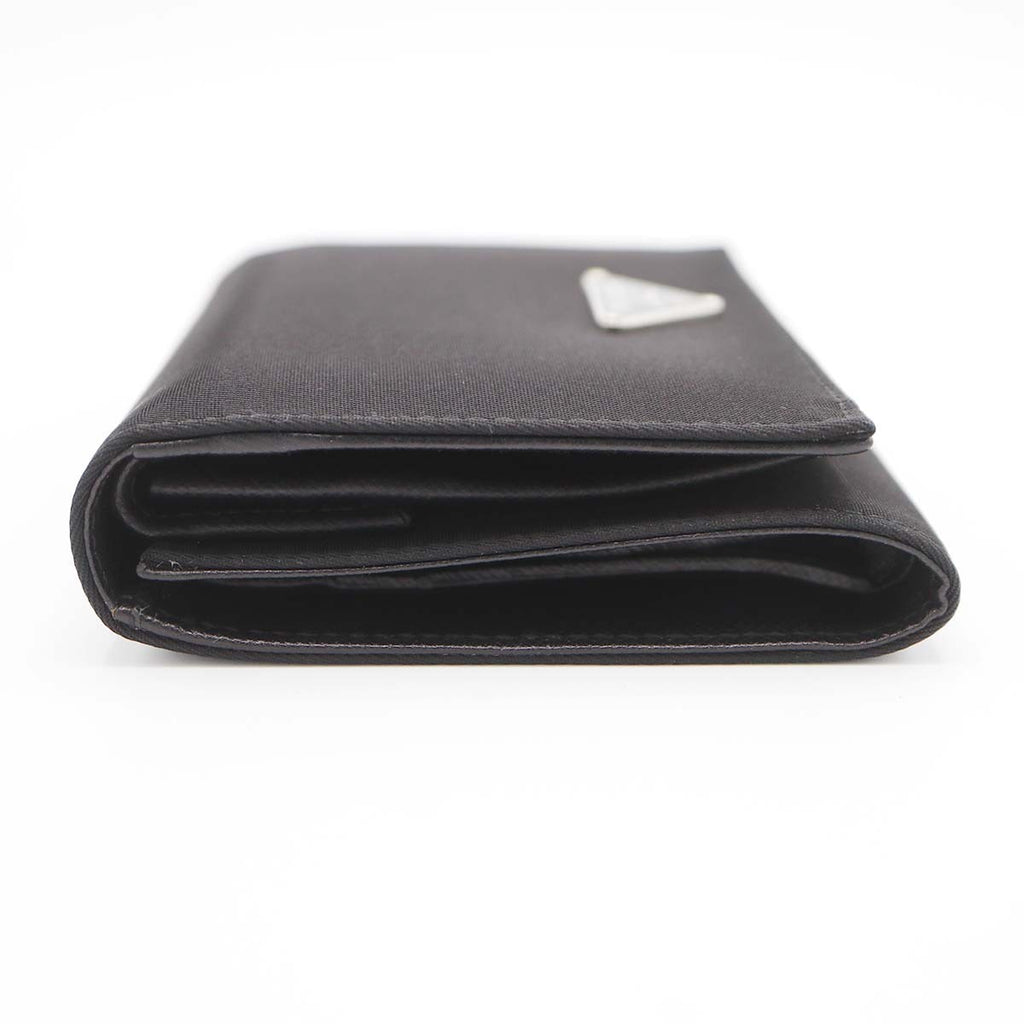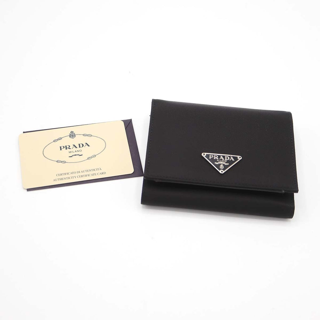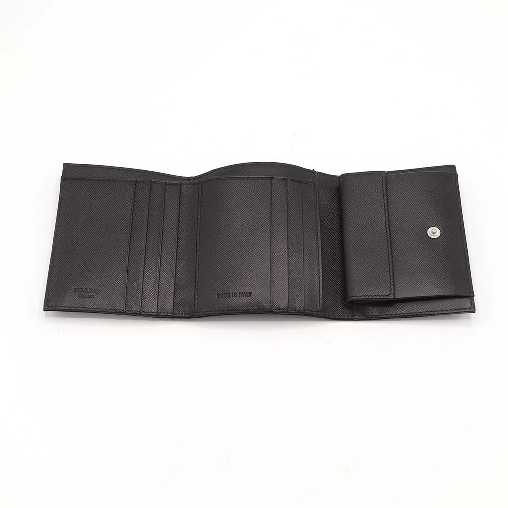 PRADA プラダ 財布 サフィアーノ レザー 三つ折り 黒 ブラック M176 ナイロン 三角ロゴ ギャラあり M4228