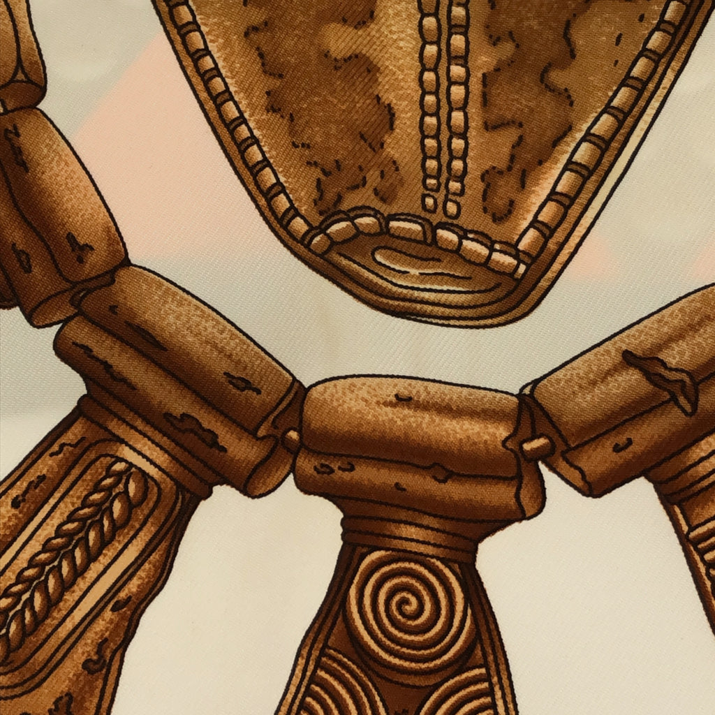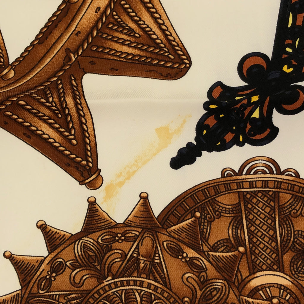 商品説明:エルメスのカレ90L’OR DES CHEFS 首長達の金スカーフです。ABランク:使用に伴いシミがある箇所が見受けられますが、比較的状態の良い商品です。