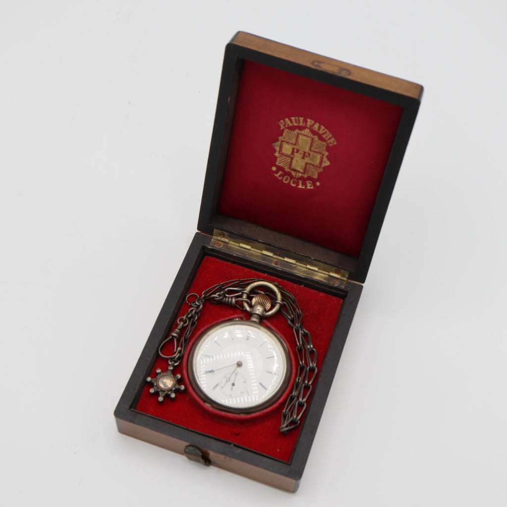 懐中時計 稼働 スモセコ 手巻き シルバー 800 銀 白色文字盤 箱付 71