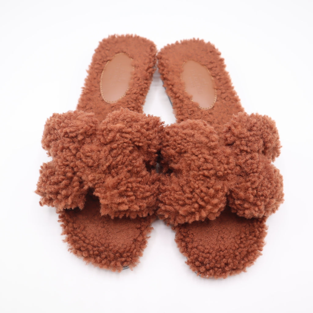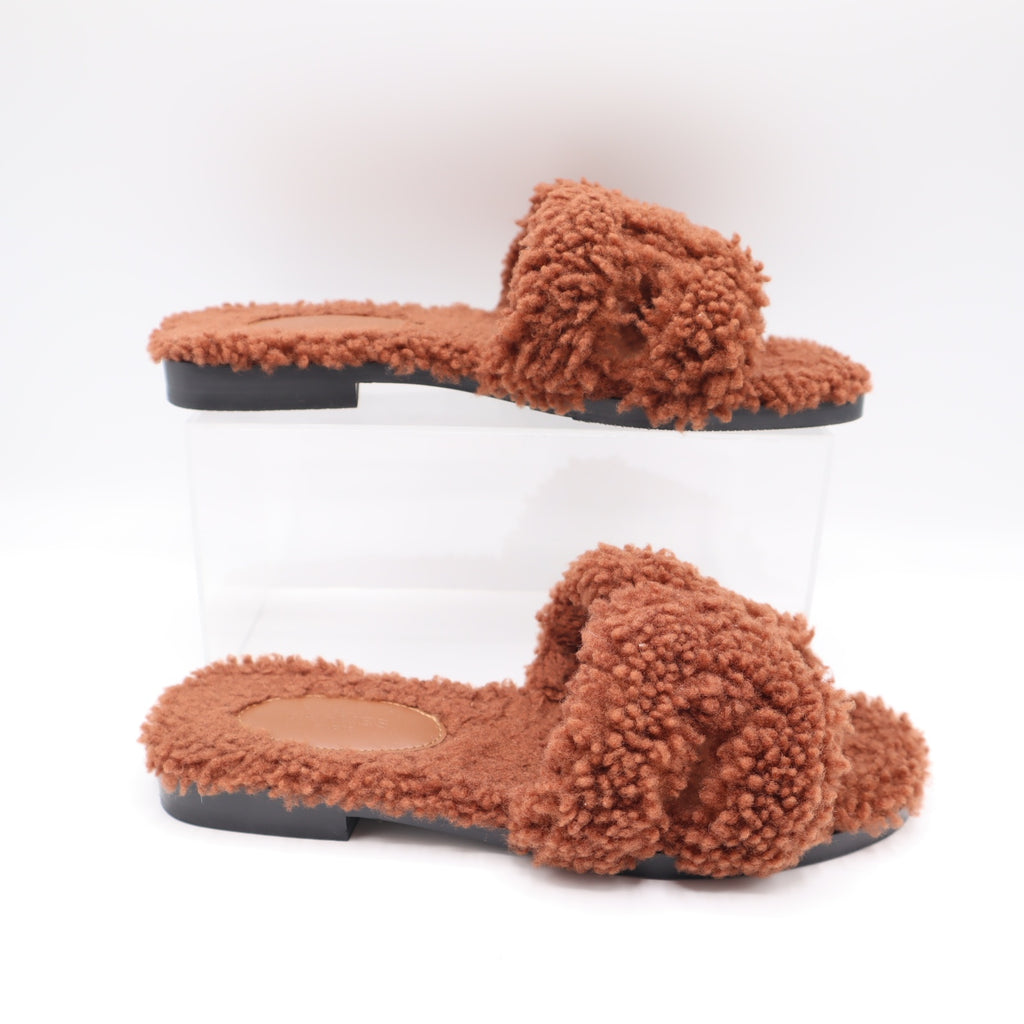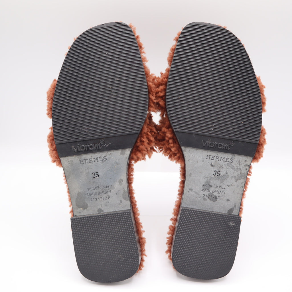 HERMES エルメス フラットサンダル 37 約22.5cm オラン ムートン ブラウン レディース 靴 箱袋有 M4170