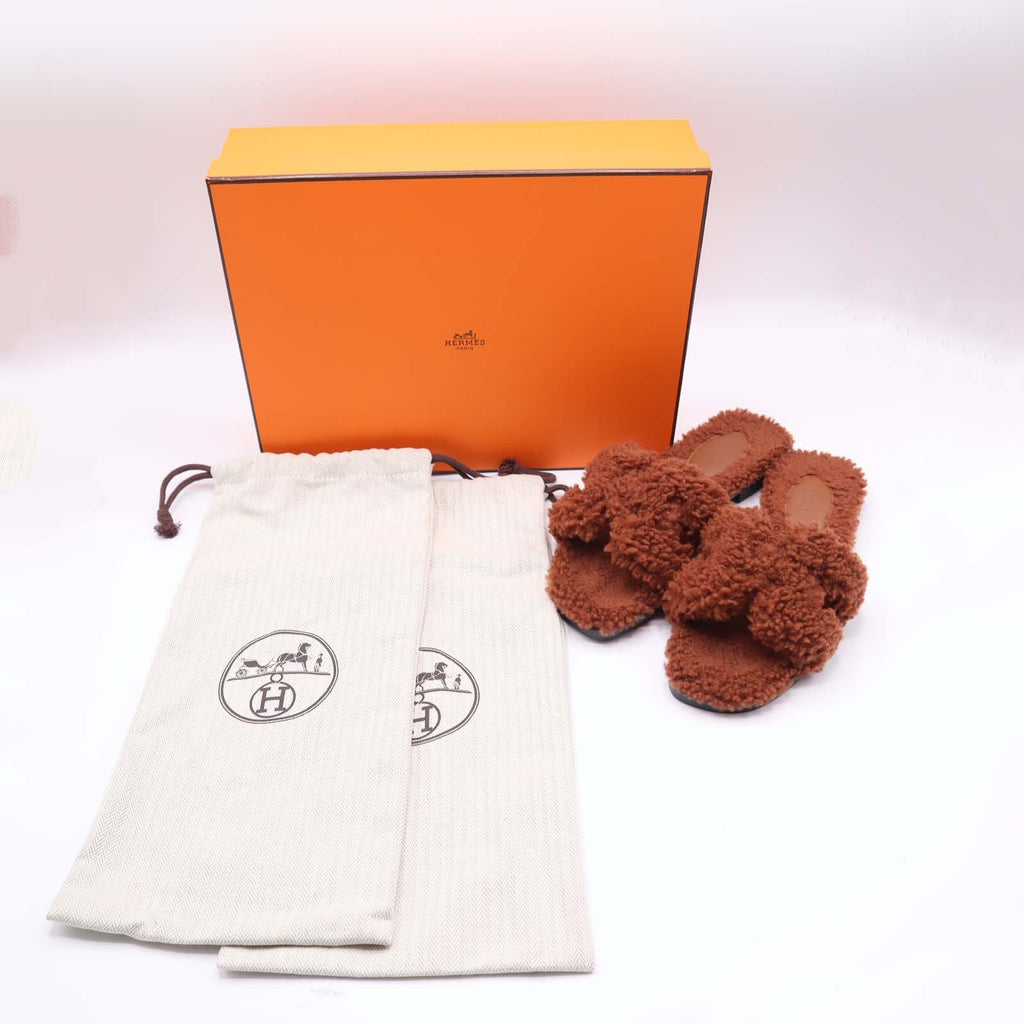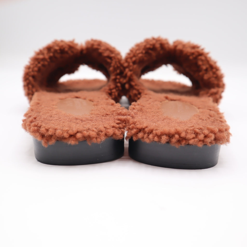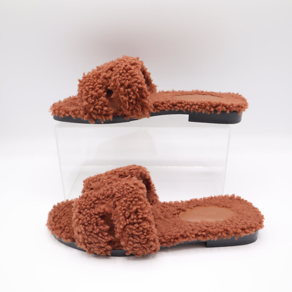 HERMES エルメス フラットサンダル 37 約22.5cm オラン ムートン ブラウン レディース 靴 箱袋有 M4170