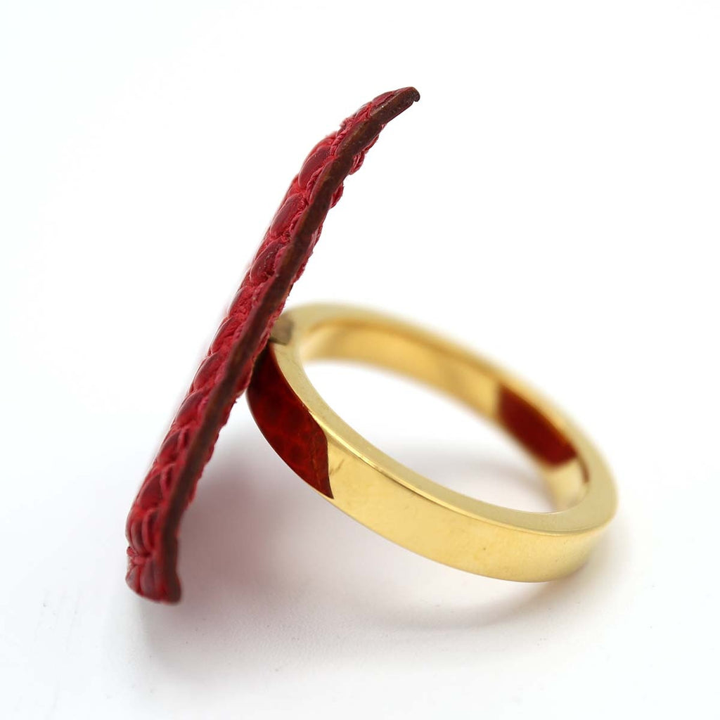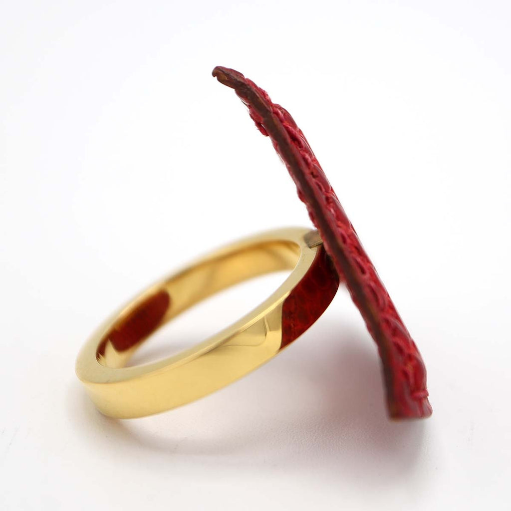 25k986-5 HERMES エルメス スカーフリング リザード トライアングル 赤 ゴールド金具 服飾小物 25k986-5