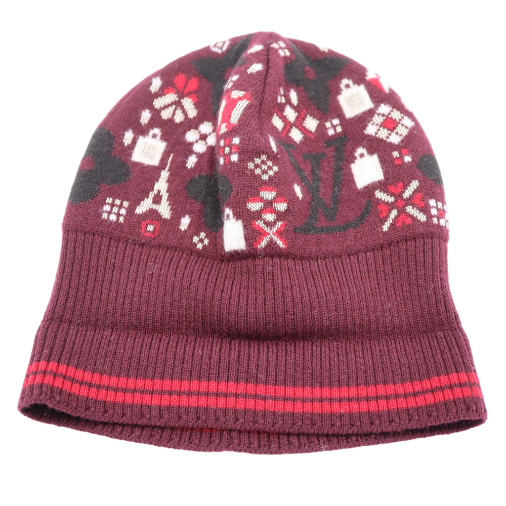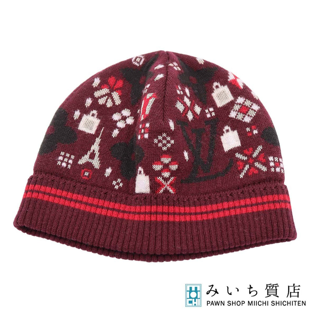 LOUIS VUITTON ルイヴィトン LV ボネ・グランフロア ニット帽 ウール91% レーヨン9% 帽子 ボルドー系 H.102