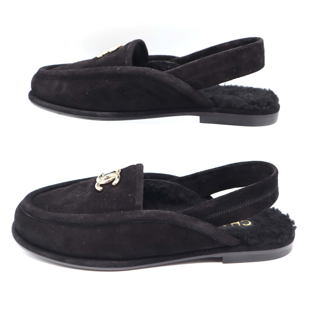 未使用 CHANEL シャネル スリングモカシン 371/2 24.5cm ココマーク ブラック 靴 箱有 H20968