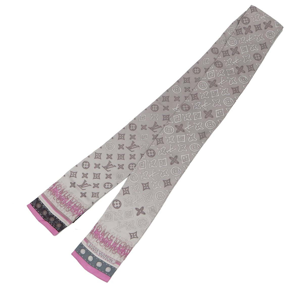 LOUIS VUITTON ルイヴィトン LV バンドー M75044 モノグラム マップ スカーフ ライトグレー ピンク 服飾小物 25k1037-6